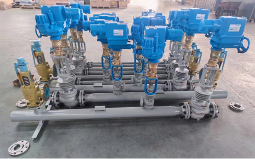 4、減溫系統(tǒng):通過高壓差調(diào)節(jié)閥,將冷卻水從噴嘴處以霧狀噴入蒸汽管道的蒸汽中,使蒸汽溫度降低;